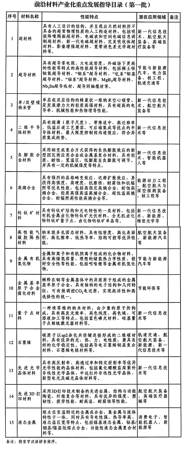 工業(yè)和信息化部、國務(wù)院國資委發(fā)布關(guān)于印發(fā)前沿材料產(chǎn)業(yè)化重點(diǎn)發(fā)展指導(dǎo)目錄(第一批)的通知。新材料產(chǎn)業(yè)是戰(zhàn)略性、基礎(chǔ)性產(chǎn)業(yè),是未來高新技術(shù)產(chǎn)業(yè)發(fā)展的基石和先導(dǎo)。前沿材料代表新材料產(chǎn)業(yè)發(fā)展的方向與趨勢,具有先導(dǎo)性、引領(lǐng)性和顛覆性,是構(gòu)建新的增長引擎的重要切入點(diǎn)。為加快前沿材料產(chǎn)業(yè)化創(chuàng)新發(fā)展,引導(dǎo)形成發(fā)展合力,工業(yè)和信息化部、國務(wù)院國資委聚焦已有相應(yīng)研究成果,具備工程化產(chǎn)業(yè)化基礎(chǔ),有望率先批量產(chǎn)業(yè)化的前沿材料,組織編制《前沿材料產(chǎn)業(yè)化重點(diǎn)發(fā)展指導(dǎo)目錄(第一批)》,后續(xù)將根據(jù)技術(shù)發(fā)展情況,適時(shí)分批發(fā)布。